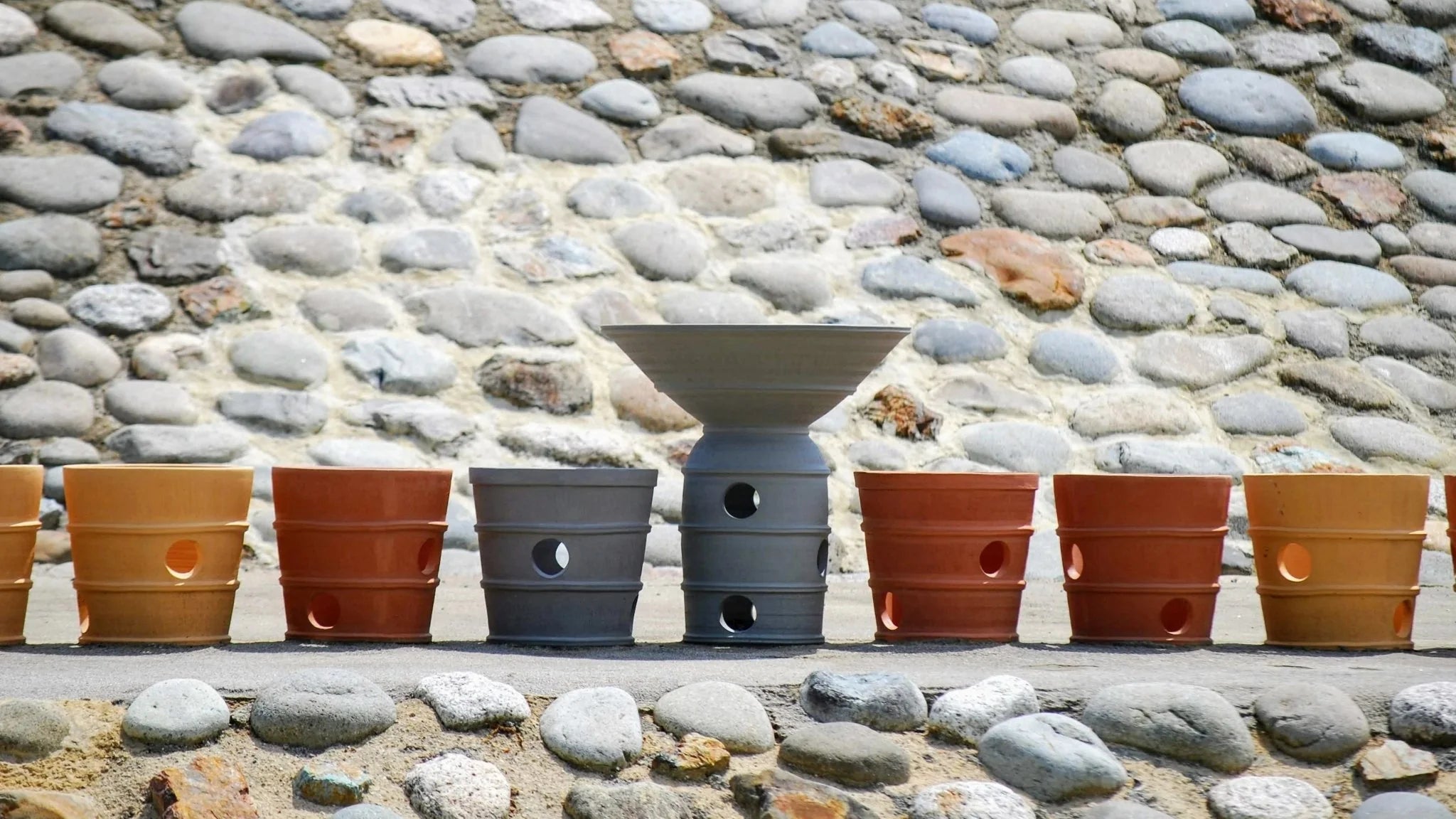 By arranging pieces of different sizes, figuring out the passage of the flame and loading them into the kiln, a flow of flame is created and a variety of different expressions can be created. The pattern is not created by accident by the flames of the kiln, but by the artist's intention during the kiln firing process.