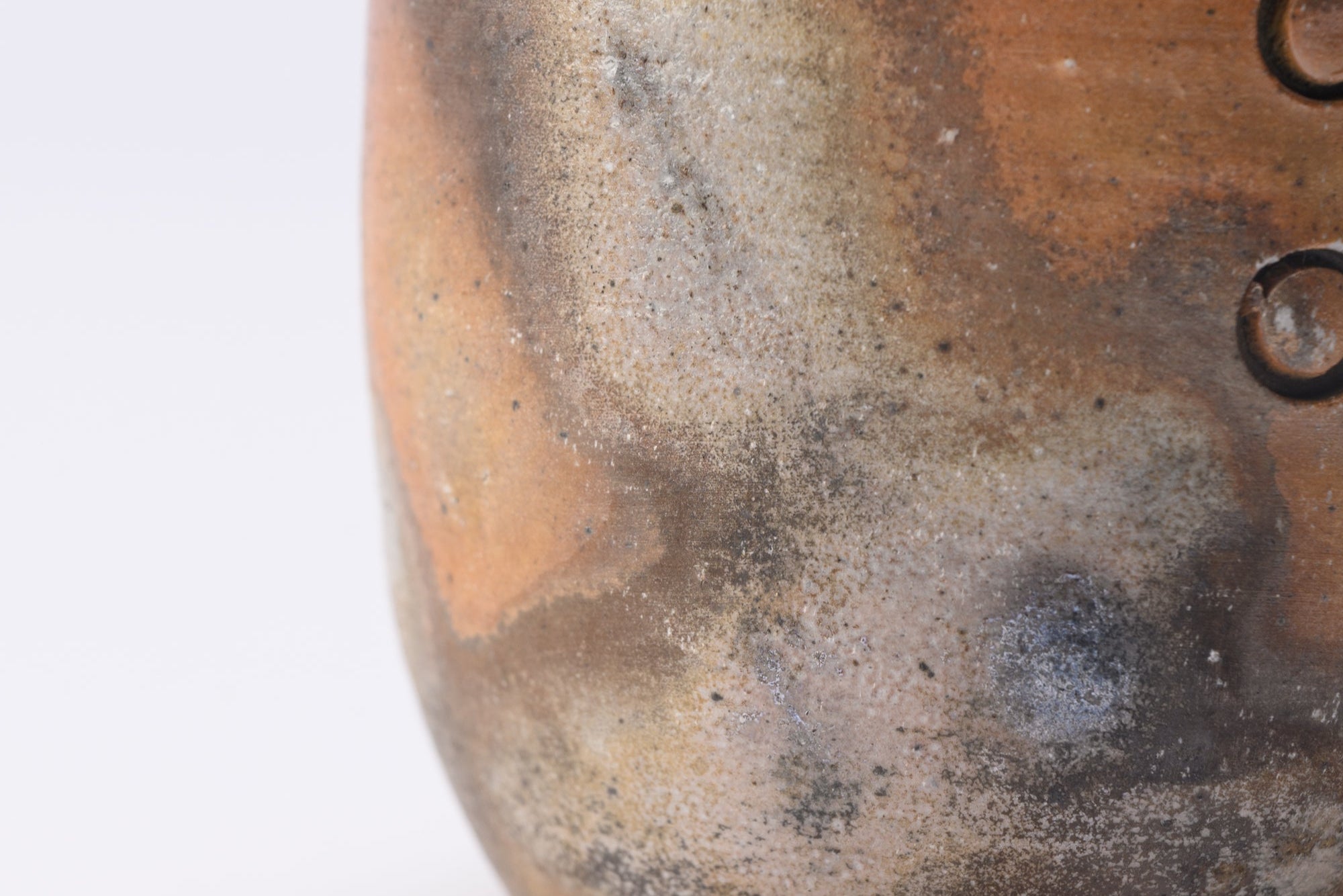 This pattern is called Goma, because the pine wood used to fire the kiln turns to ash, which adheres to the work and gives it a pattern that looks like a sprinkling of sesame (=Goma) seeds.