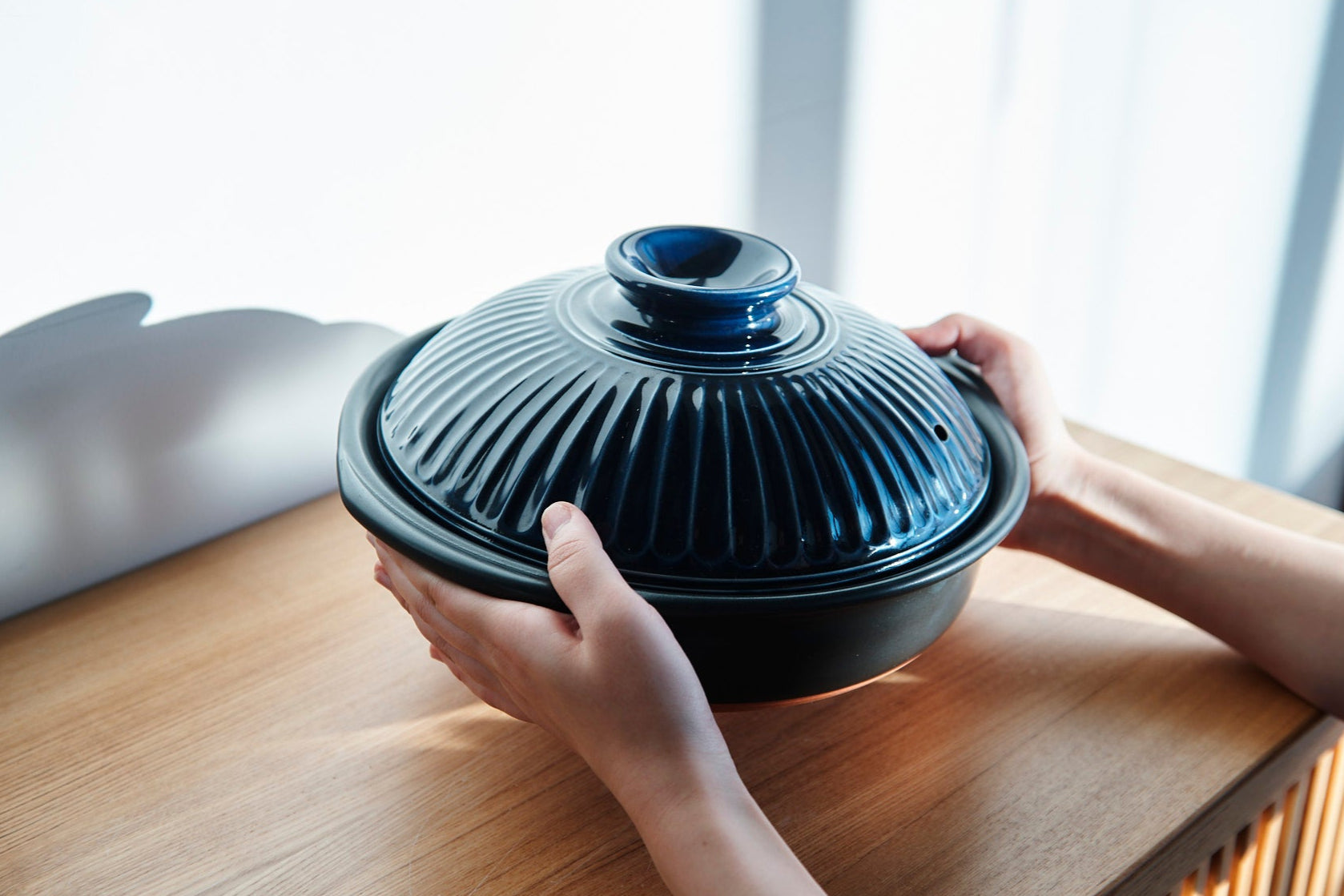 Kikka Navy IH-Compatible Donabe Japanese Clay Pot for 3 to 4 personsKikka Banko Donabe Japanese Clay Pot Induction Compatible for 3 to 4 persons - MUSUBI KILN - Quality Japanese Tableware and Gift