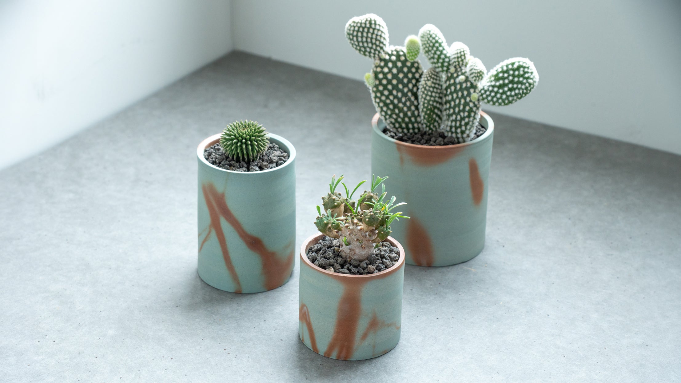 While Yoshino carefully sources the clay, Hosokawa works alongside young Bizen craftspeople to shape each pot. Today, the workshop produces two main series of plant pots: one made with recycled Bizen ware clay, and another distinguished by its unique turquoise blue color. These pots are the product of the rich connections between people working together through shared expertise and trust.