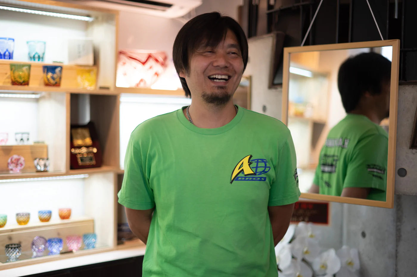 He began training at eighteen, shortly after high school, and spent fifteen years apprenticing under a seasoned artisan. Today, he holds the prestigious title of Edo Kiriko Craftsperson in recognition of his accomplishments.