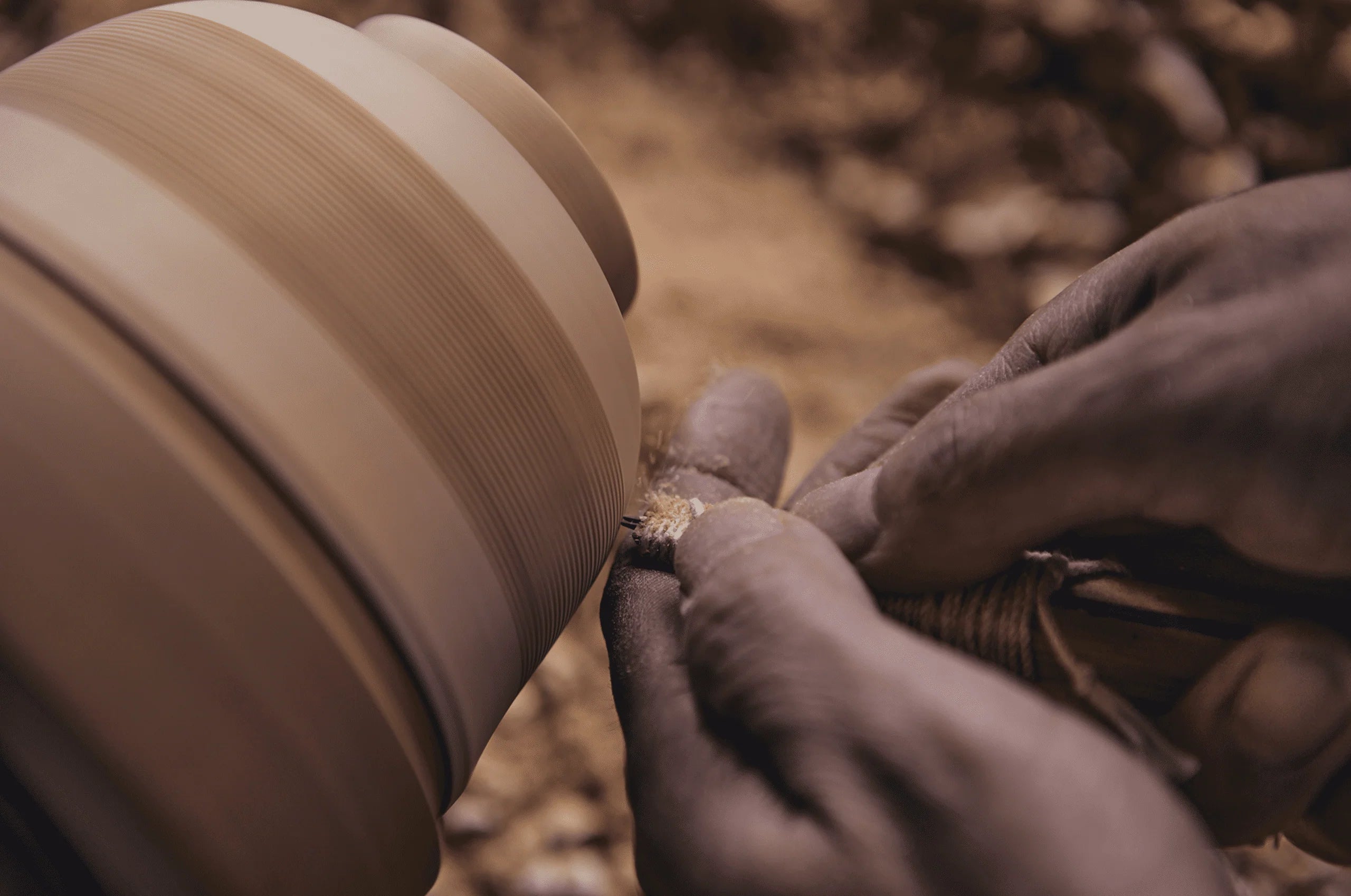 Since its founding, Yamanaka Lacquerware's woodworking has been characterized by the technique of grinding wood on a lathe. Based on the kiji-biki technique, which involves carving fine concentric lines when carving on a lathe, Yamanaka lacquerware has various types of carved designs, including sensuji, a typical Yamanaka lacquerware design of a striped pattern carved vertically.