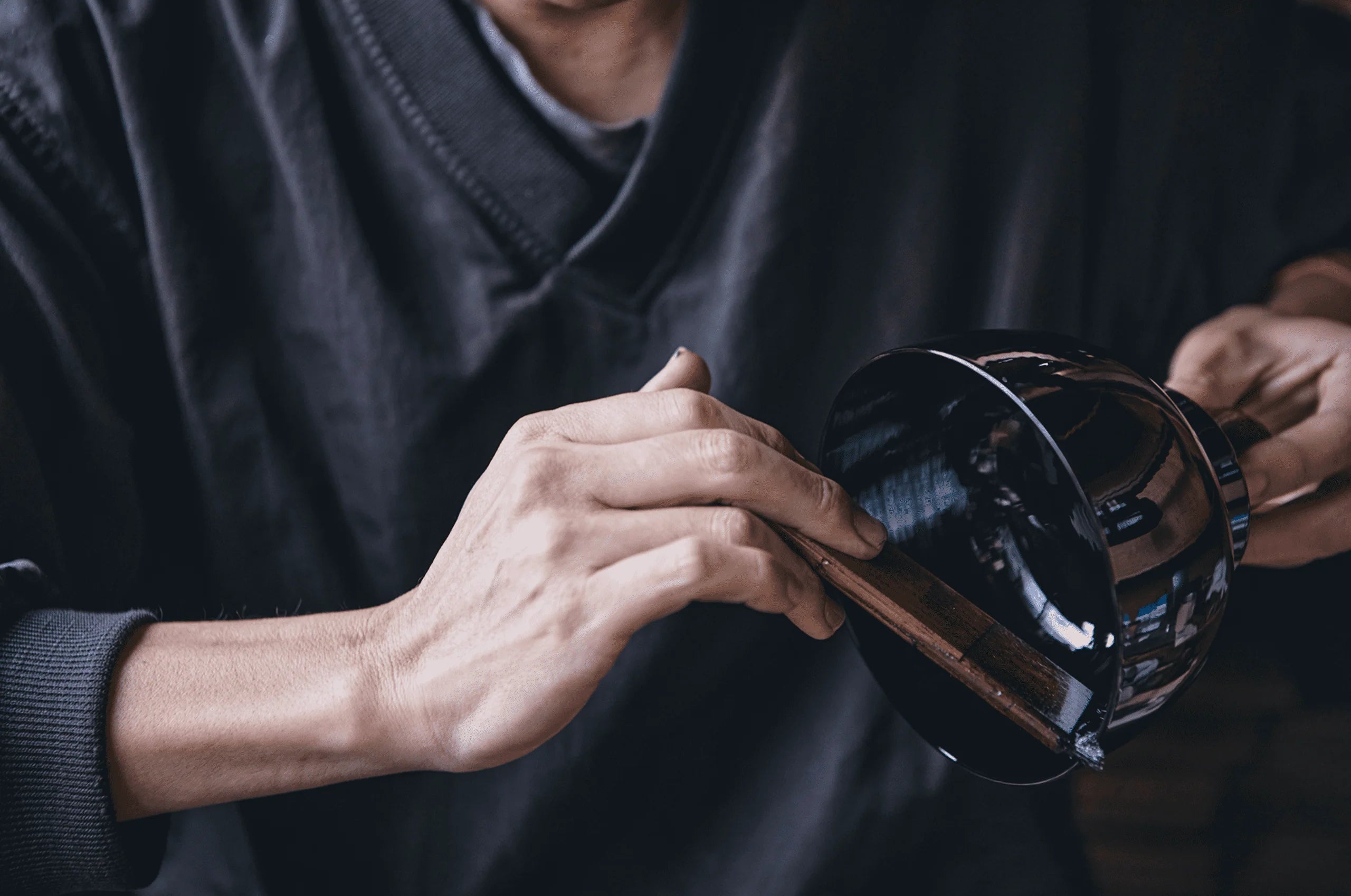 Yamanaka's woodworking techniques are said to be the best in Japan. Have you ever seen woodcraft so thin you could see light through it? Such delicate wooden vessels are made possible by the high level of skill and dedication to sharpness of the craftspeople, who start from forging their own tools from steel.