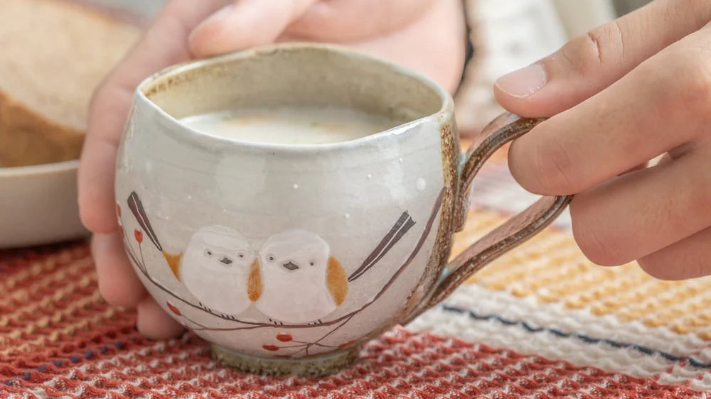 Among the collection, the Round Mug stands out for its generous size and softly rounded shape. Born from a collaboration with Kokuzo Kiln, who crafted its base, and Atelier Yu, who hand-painted its delicate designs, this special mug is available exclusively at MUSUBI KILN.
