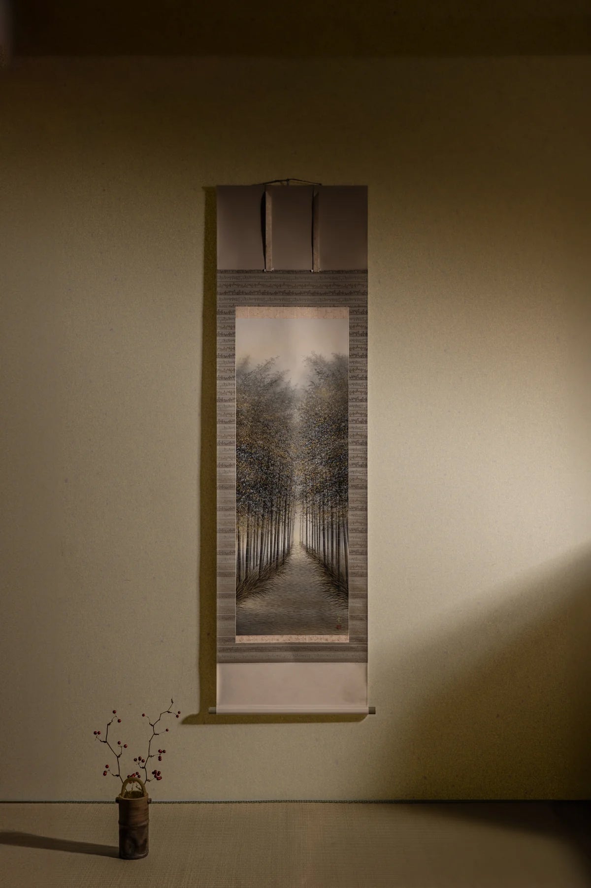 Sein StückBambushain ist von der Pilgerroute Kumano Kodo inspiriert, stellt jedoch keine wörtliche Darstellung einer realen Landschaft dar. Vielmehr ist es eine aus Erinnerung und Intuition komponierte Vision – ein ruhiger Hain, in dem der Wind weht, Licht durchscheint und Bambusblätter sanft schwanken.