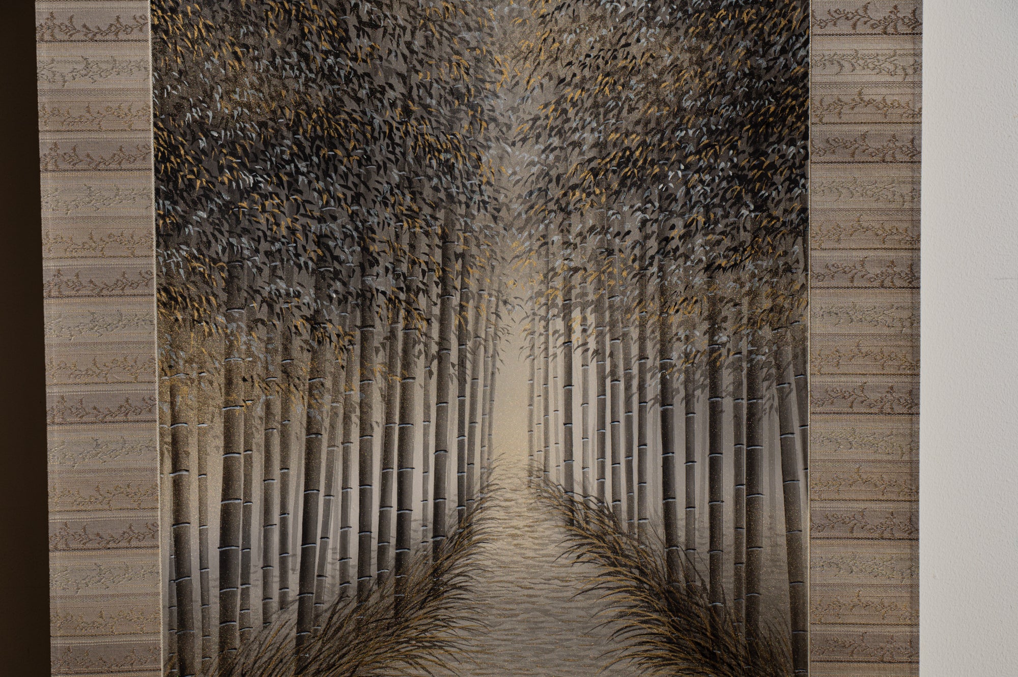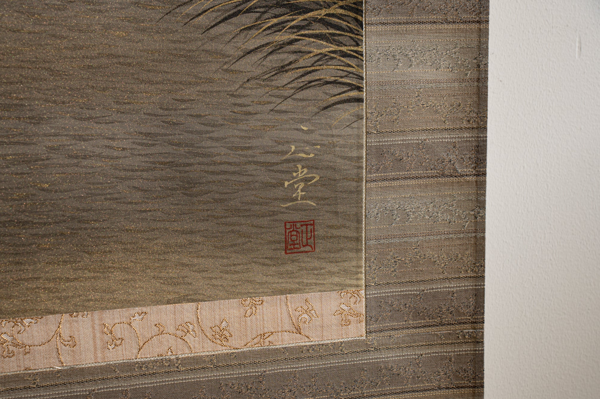 Da seine Werke als Kakejiku (Hängerollen) montiert sind, müssen sie auch beim Aufrollen flach, flexibel und glatt bleiben. Diese strukturelle Überlegung spiegelt eine bemerkenswerte Balance zwischen Design und Technik wider.
