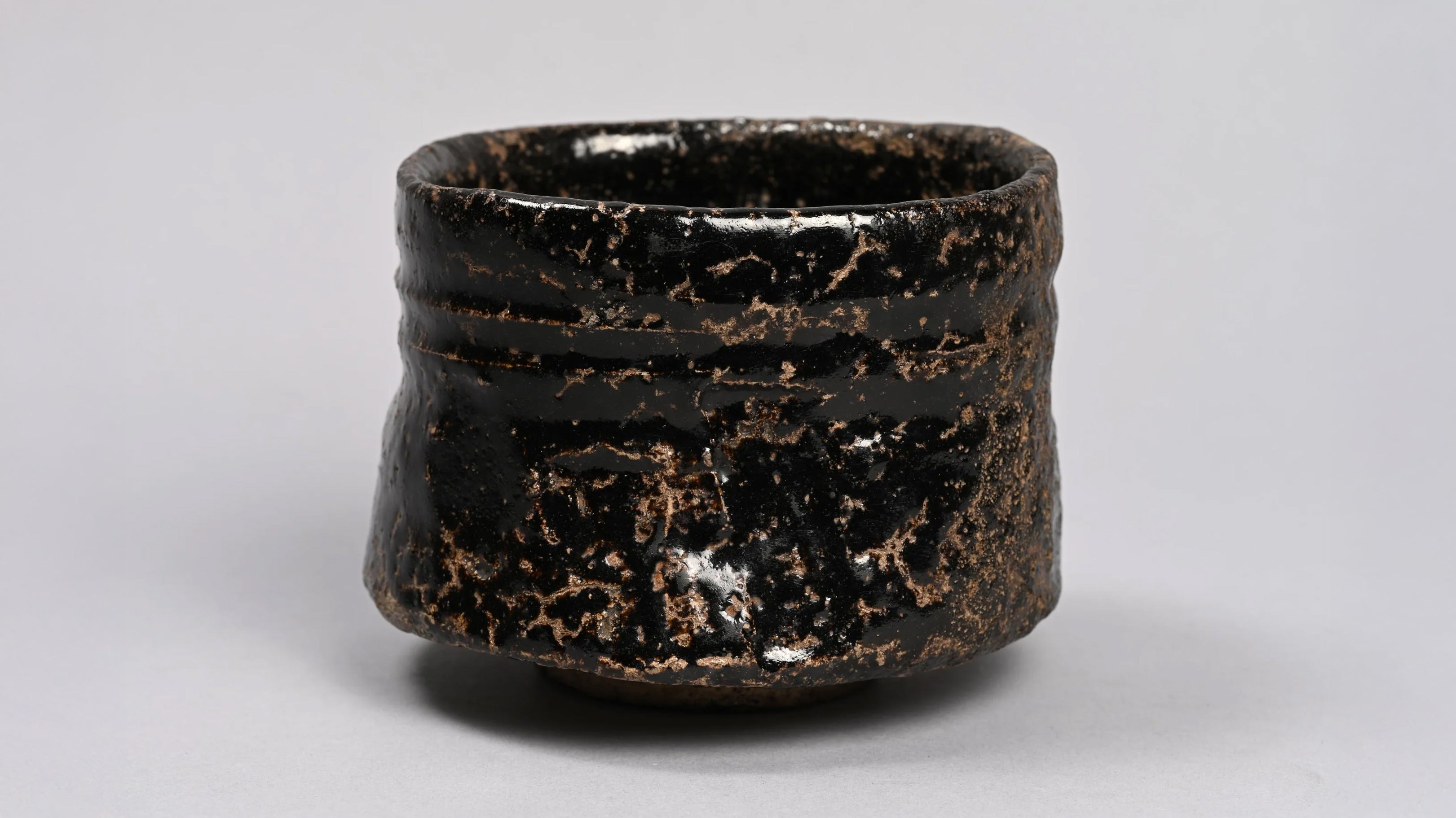 Die Oberfläche weist oft leichte Haarrisse durch thermischen Schock auf, die ihr Charakter und Tiefe verleihen. Die dramatische schwarze Glasur und die organischen Unvollkommenheiten machen Seto-guro zu einer eindrucksvollen Wahl für Teeschalen, bei denen Kontrast und Textur großen Wert gelegt werden.