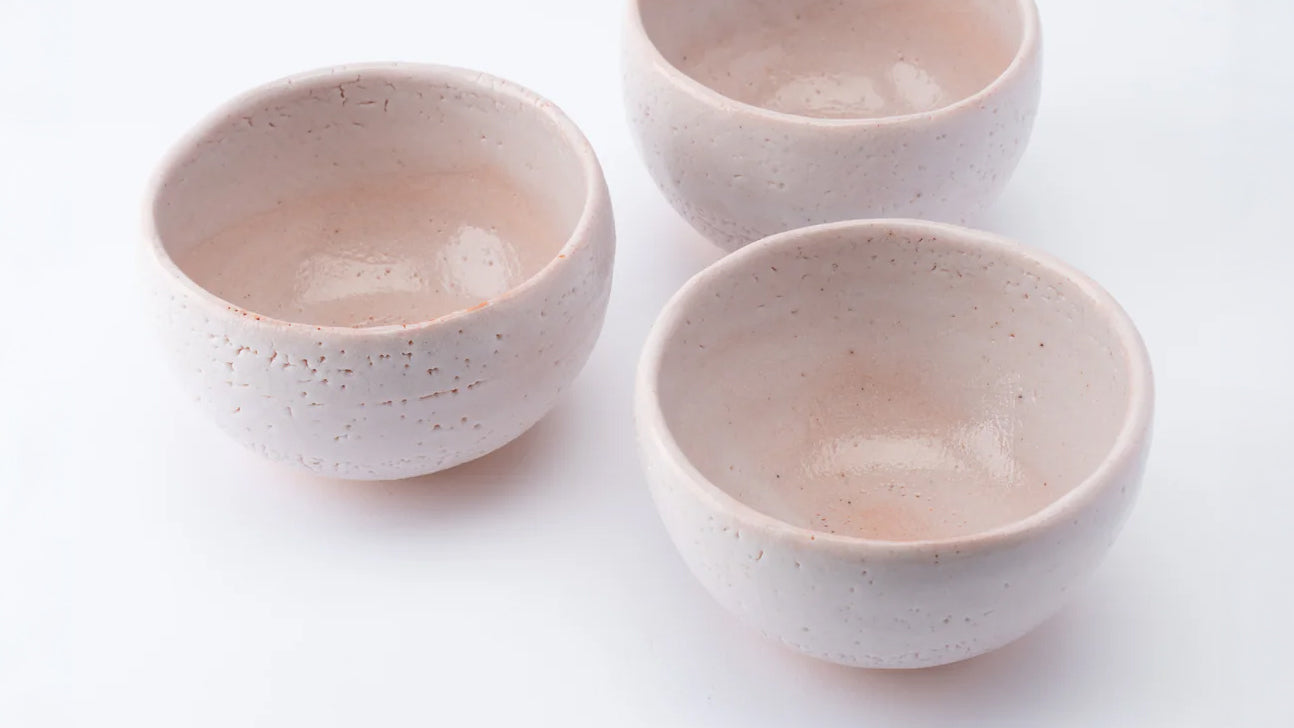 Charakterisiert durch seine dicke, milchig-weiße Shino-Glasur, zeigt Shino Ware oft subtile rosa Töne und feine Oberfläche kannyu oder Poren, was ihm eine warme und sanfte Textur verleiht. Es wird gröberer Ton verwendet und seine sanfte Farbpalette ergänzt die Ästhetik der traditionellen Teezeremonie.