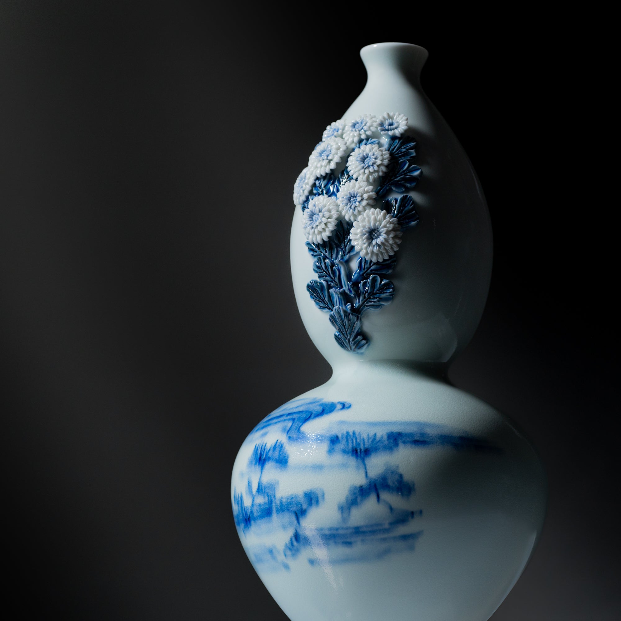 Er hat sein Leben der Beherrschung und Bewahrung dieser Technik gewidmet und schafft so ätherische, dreidimensionale Blüten, die auf der zarten weißen Oberfläche der Mikawachi-Ware zu tanzen scheinen. Seine Werke gehen über bloße technische Exzellenz hinaus und offenbaren nicht nur die tiefe Schönheit traditioneller Handwerkskunst, sondern bieten auch Einblicke in die Seele eines Kunsthandwerkers, dessen Leben untrennbar mit seiner Kunst verbunden ist.