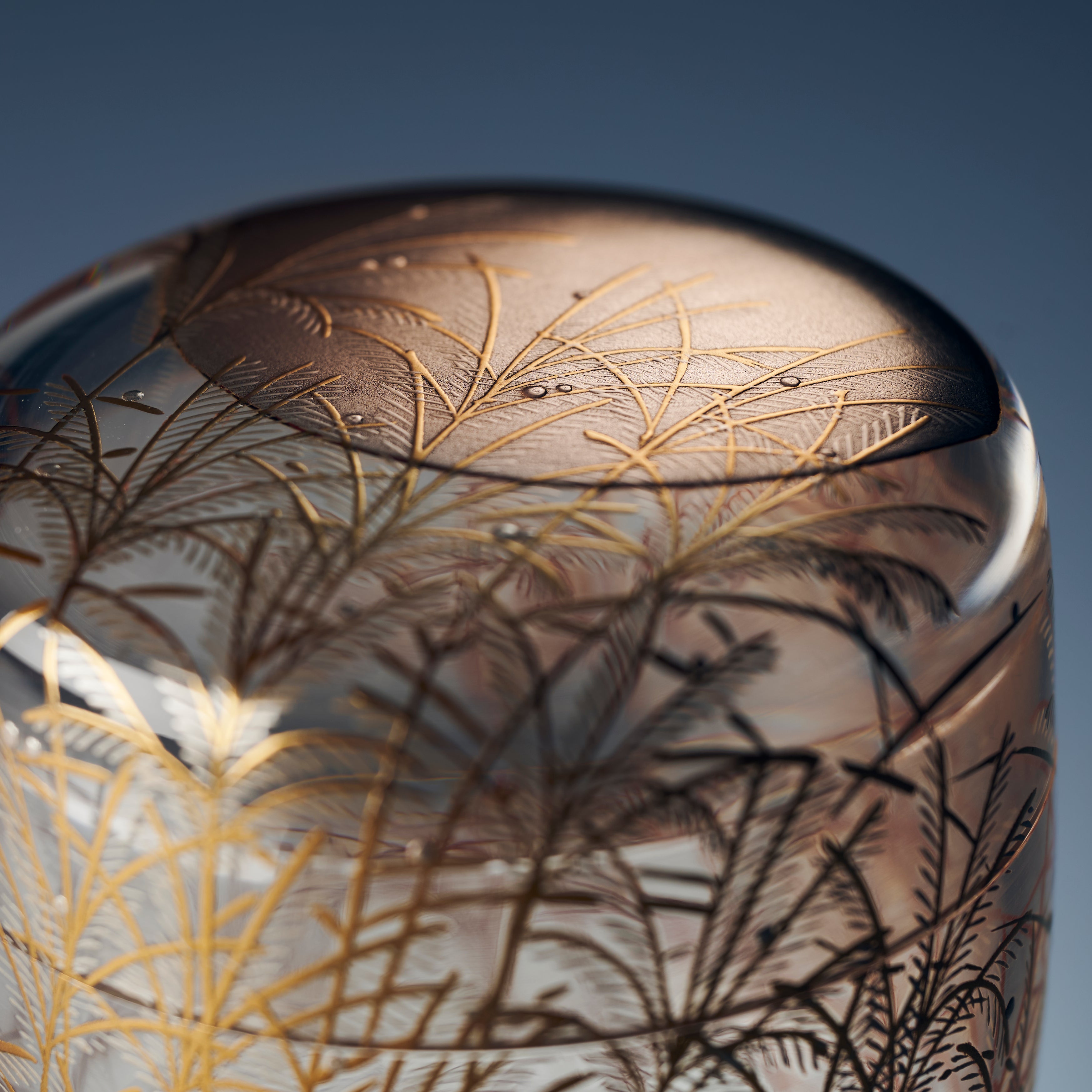 His bold explorations breathe vitality into each piece. With the finest brushstrokes paired with highly expressive skills, he allows a sense of brilliance to flow across the transparent surface. The result is an art form that feels both delicate and radiant, an interplay of control and spontaneity where tradition and innovation meet. Each work seems to shimmer with its own quiet energy, inviting the viewer to pause and discover deeper layers of beauty.