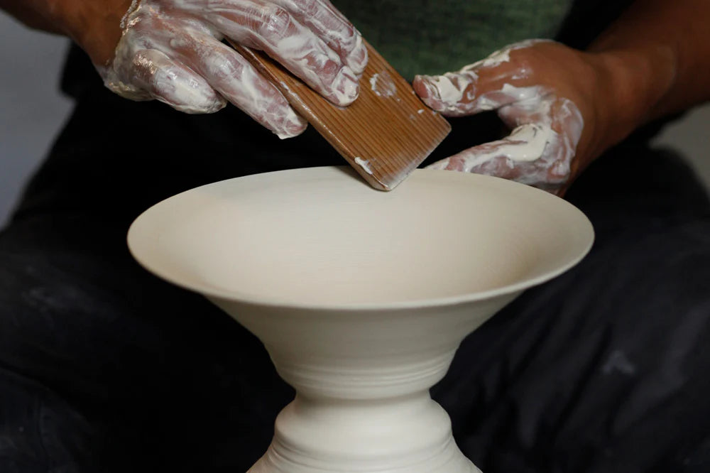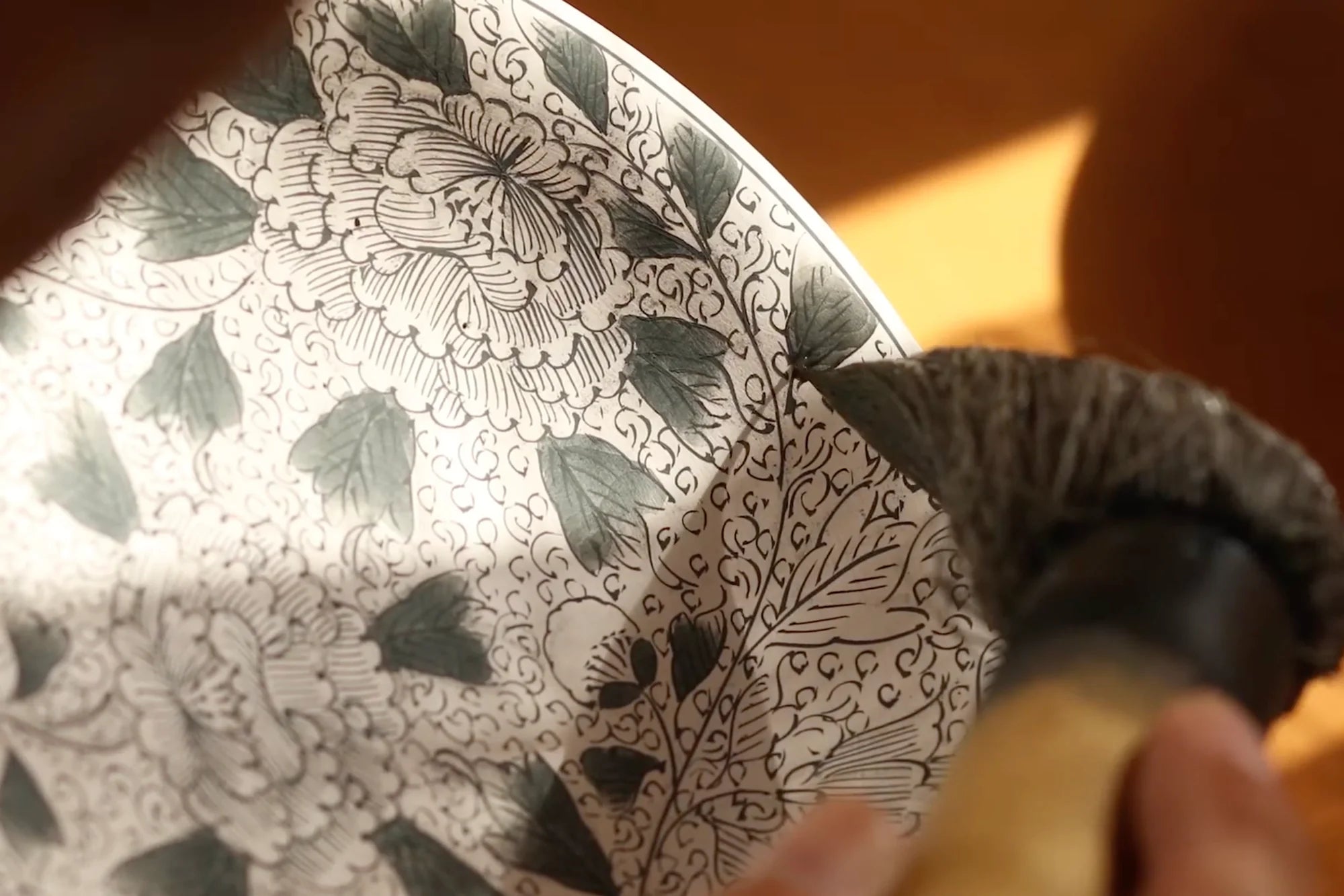 Mientras que Blue and White utiliza un pincel empapado en pigmento de cobalto para "pintar" dentro de los contornos, Kakusho Kiln cree en la "filtración" del pigmento que se infunde naturalmente en la pieza de bizcocho. La técnica altamente especializada y la singularidad del horno, con su delicado toque de infiltración del pigmento, crean un tono azul suave y reconfortante.