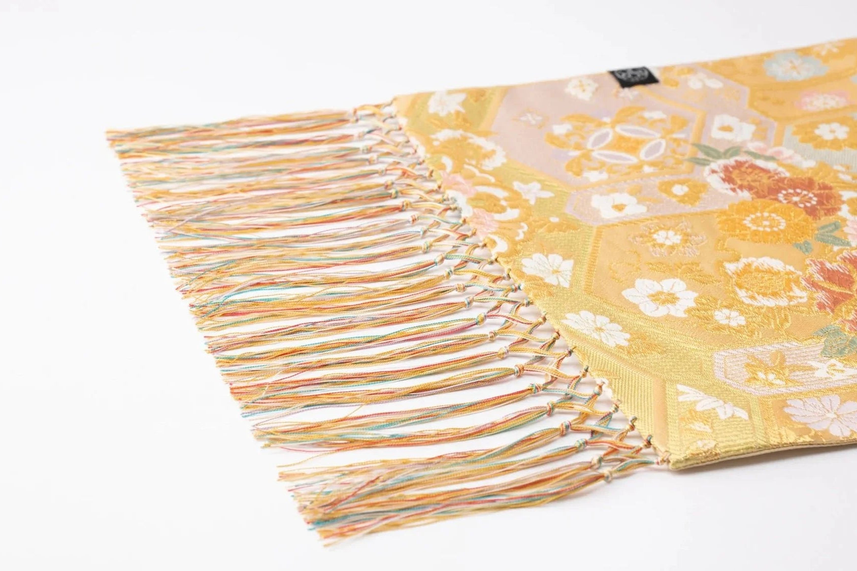 Los caminos de mesa Kikyoya están confeccionados con tela tradicional de seda pura Nishijin Ori de alta calidad. Su delicado tejido presenta diseños intrincados pero audaces que les confieren un hermoso aspecto tridimensional.