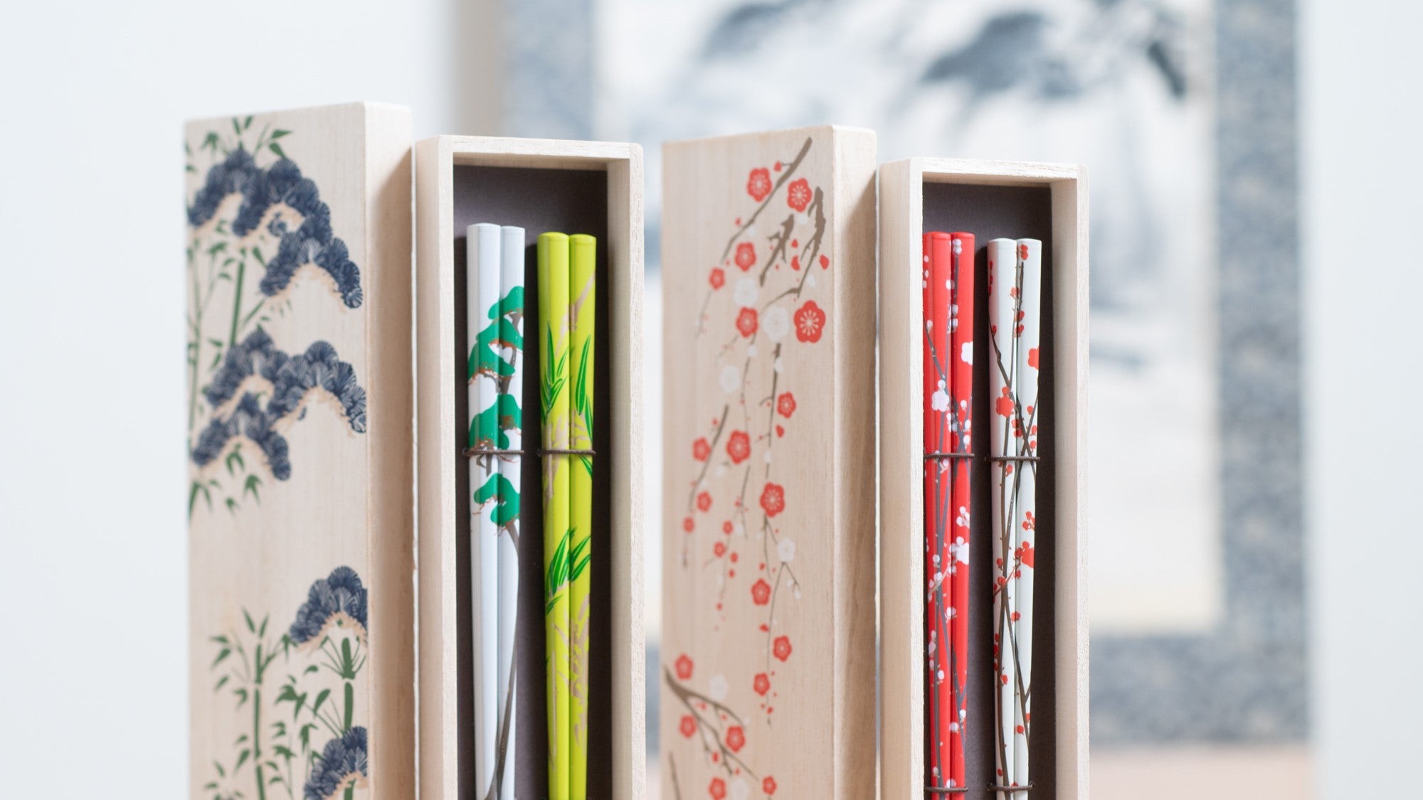 Descubra el legado artístico de la escuela Rimpa, que se remonta a unos 400 años, a través de los hermosos diseños de los palillos Matsukan de la serie Rimpa. Estos modernos palillos fusionan la vibrante tradición de Rimpa con la estética contemporánea. Presentan diseños auspiciosos como flores de ciruelo rojas y blancas, y pino y bambú de vivos colores, que celebran la belleza imperecedera de la naturaleza.