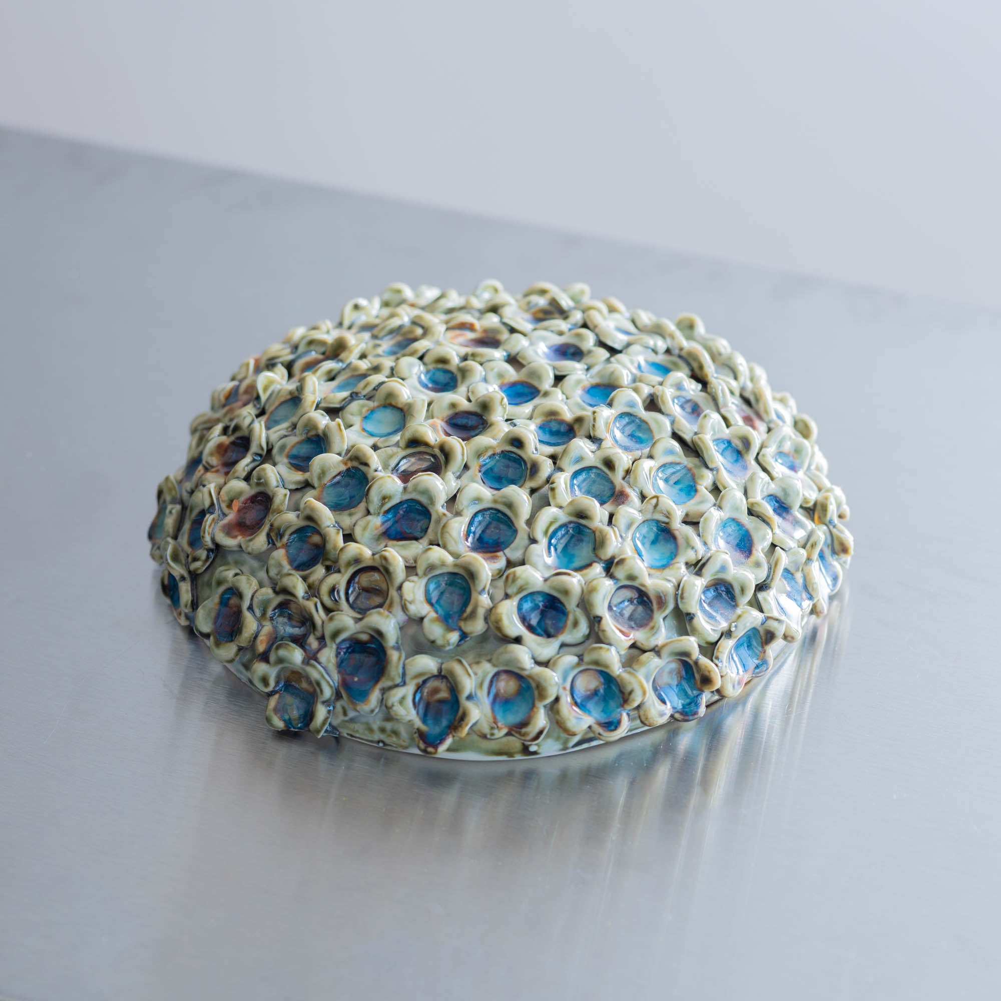 Richly textured, with a depth of glaze and detail that rewards prolonged and repeated viewing, their forms seem to subtly shift with the angle of the light and the vantage point of the viewer. Their fascination lies partly in their ambiguity. Does a piece represent a cactus, or a flower, a sea urchin, or a seed pod? Perhaps all of the above? Without one simple answer,  it is up to the eye and heart of the beholder.