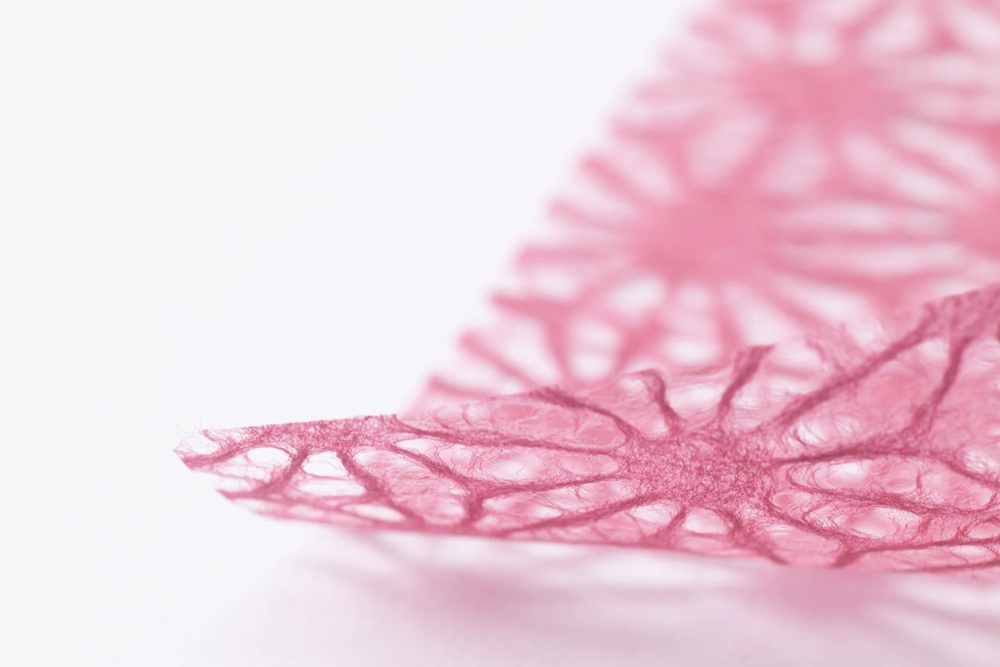 El papel "Rakusui" es un tipo de papel washi en el que se aplica agua durante la fabricación, creando patrones. Este papel se caracteriza por su apariencia de encaje con agujeros. La velocidad de fabricación, que puede alcanzar varios metros por segundo, y la intuición del artesano, que ajusta la mezcla de materiales en gramos, son fundamentales para crear los hermosos remolinos del patrón Rakusui. El método de elaboración, con sabiduría e ingenio, sigue siendo el mismo hoy que en el pasado, incluso con la ayuda de máquinas.