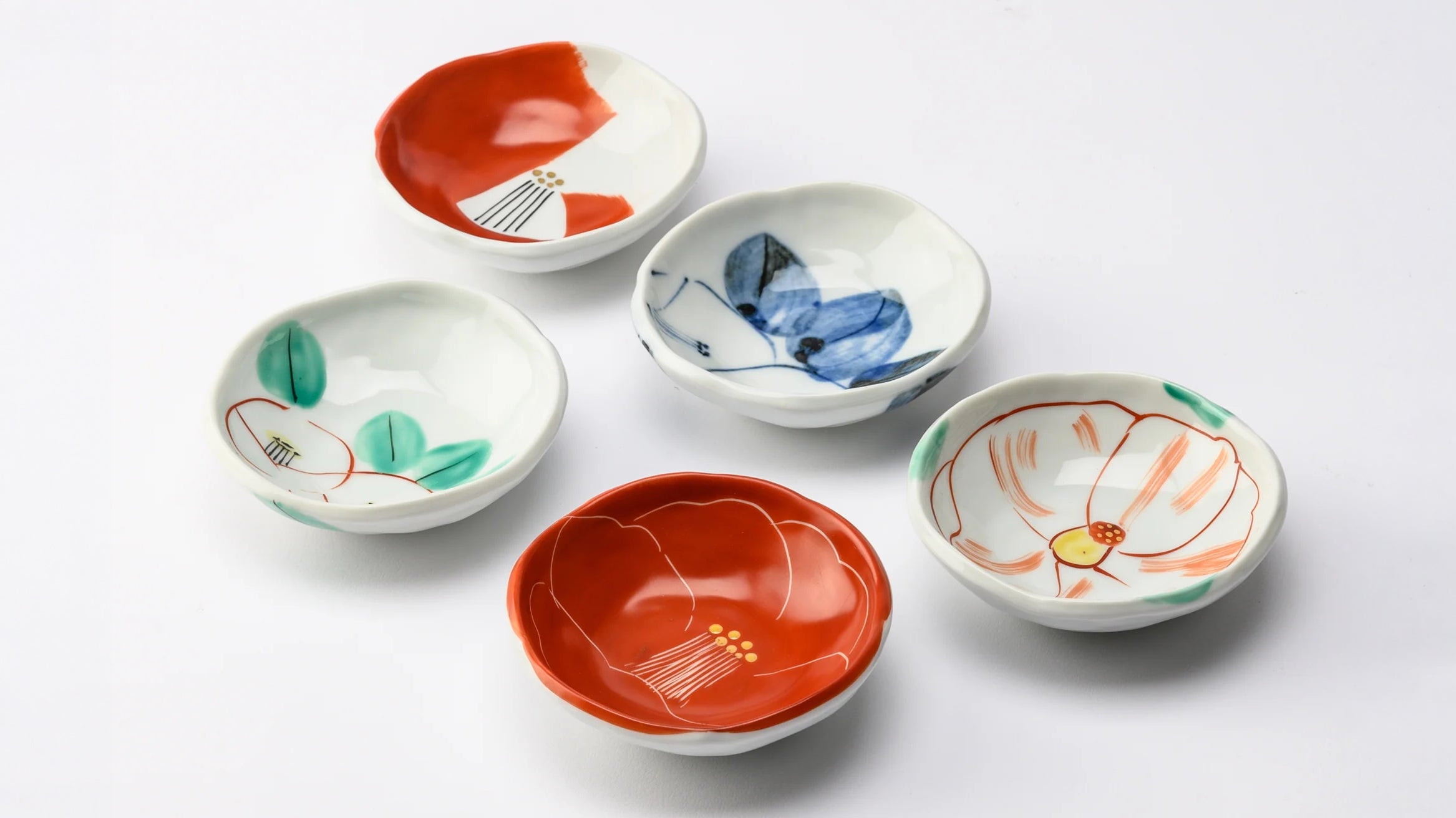 The camellia, a flower native to Japan and long regarded as a symbol of good fortune, blooms in rich, vivid colors from winter through early spring. Using a deeply nuanced original red pigment, Zoho Kiln depicts the camellia motif in the spirit of Kitaoji Rosanjin (1883–1959 CE)—the renowned Japanese ceramic artist and gourmet—capturing a balance of dignified purity and quiet elegance, enlivened by a subtle sense of grace and beauty.