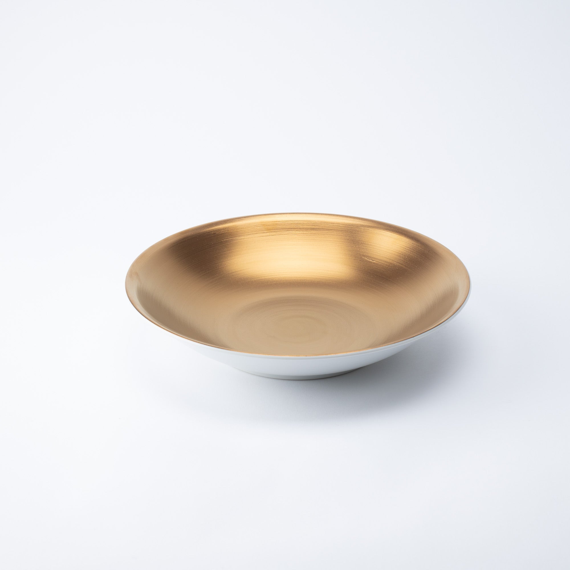 Este gran tazón para servir tiene un precioso dorado por dentro y un blanco transparente por fuera. Este plato hondo puede usarse para servir una ensalada o un plato principal. Es perfecto para fiestas, para presentar con lujo una ensalada de hojas verdes en vibrantes tonos verdes o para servir sashimi.