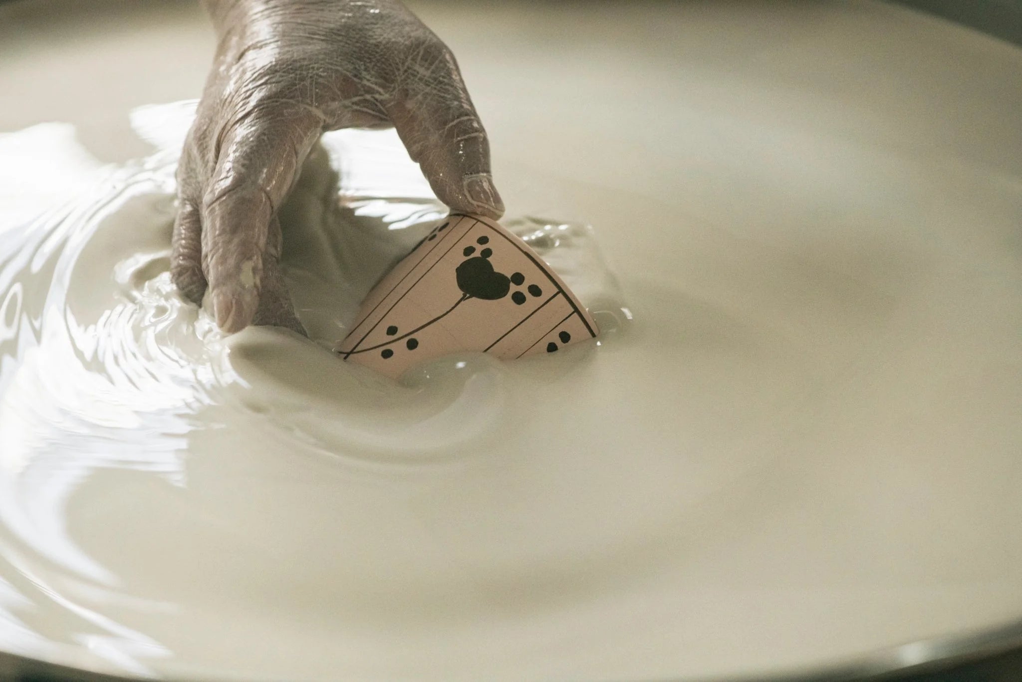 Dans ce procédé, le motif original du four Keizan est dessiné à l'encre sumi sur du papier japonais fin, qui est ensuite frotté sur la surface de l'œuvre pour le transférer. L'encre sumi ne reste pas, car elle brûle lors de la cuisson.