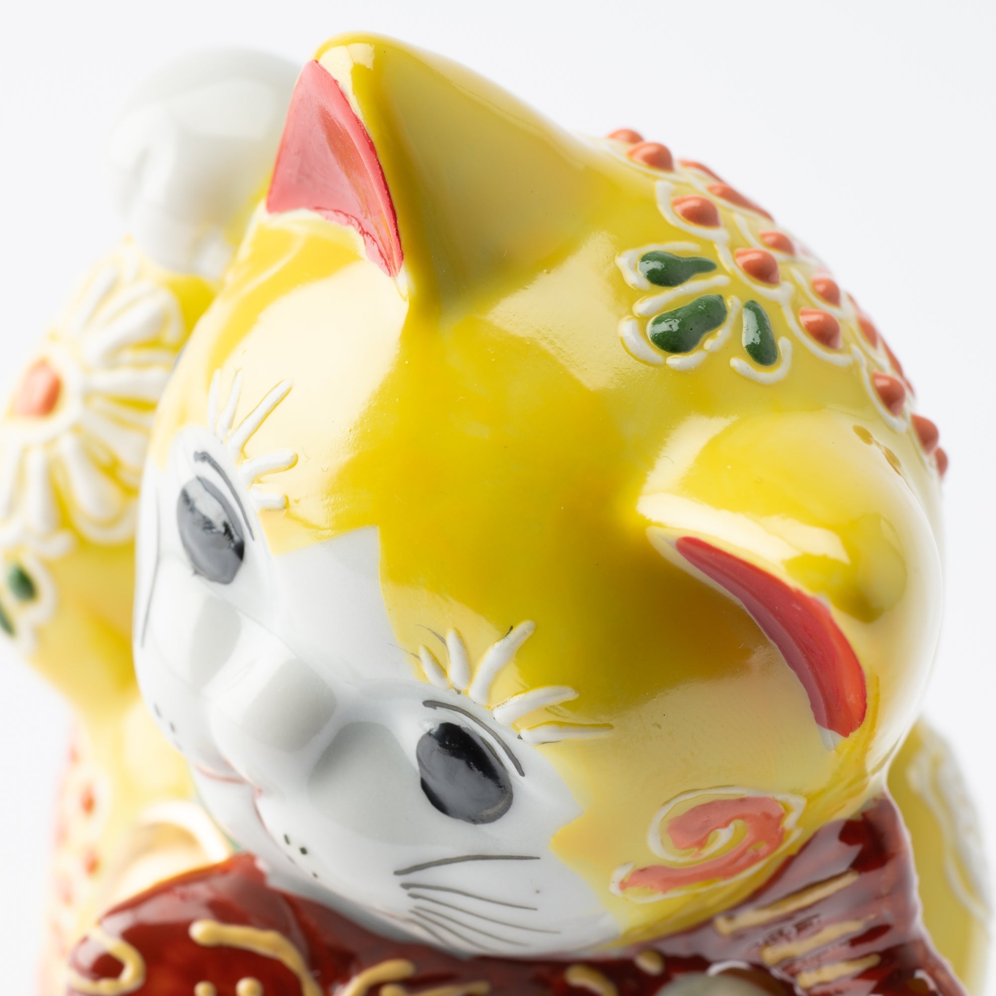 Yellow is considered a color of good fortune. It is said that a cat with its right paw raised invites prosperity and luck.