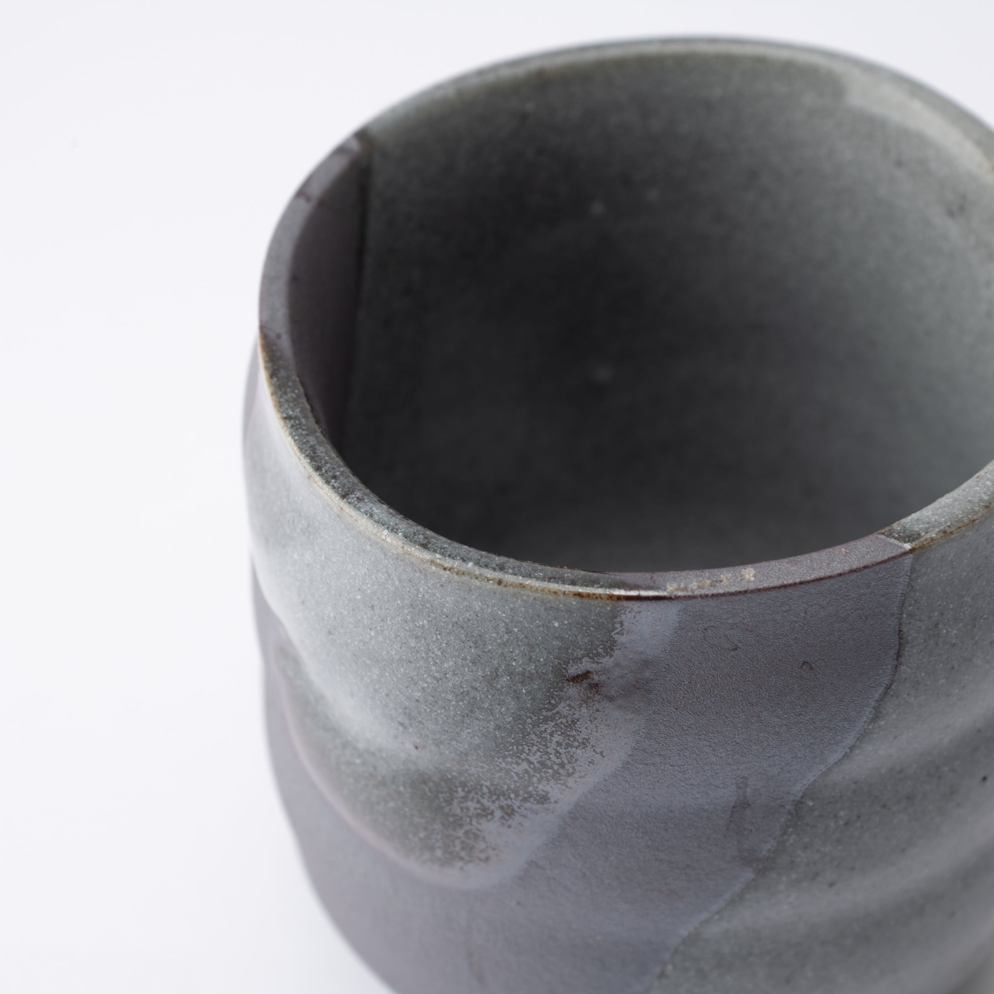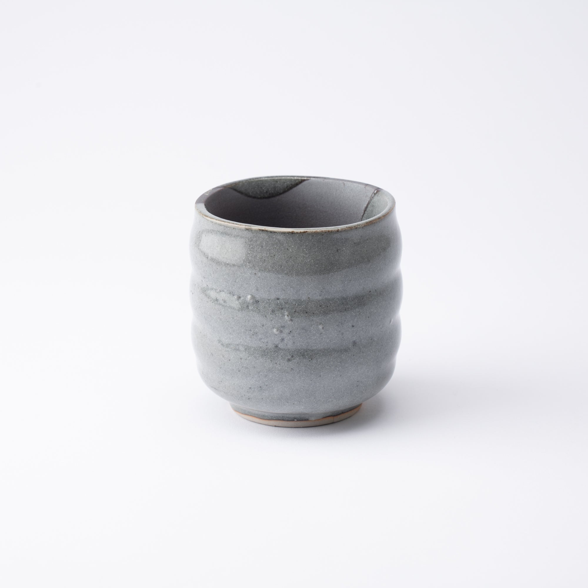 This large Mino ware teacup has a solid, thick form, which is enough to keep tea warm. By leaving some parts lustrous glazed and others unglazed, the design is a full of expression even in a single gray color.
