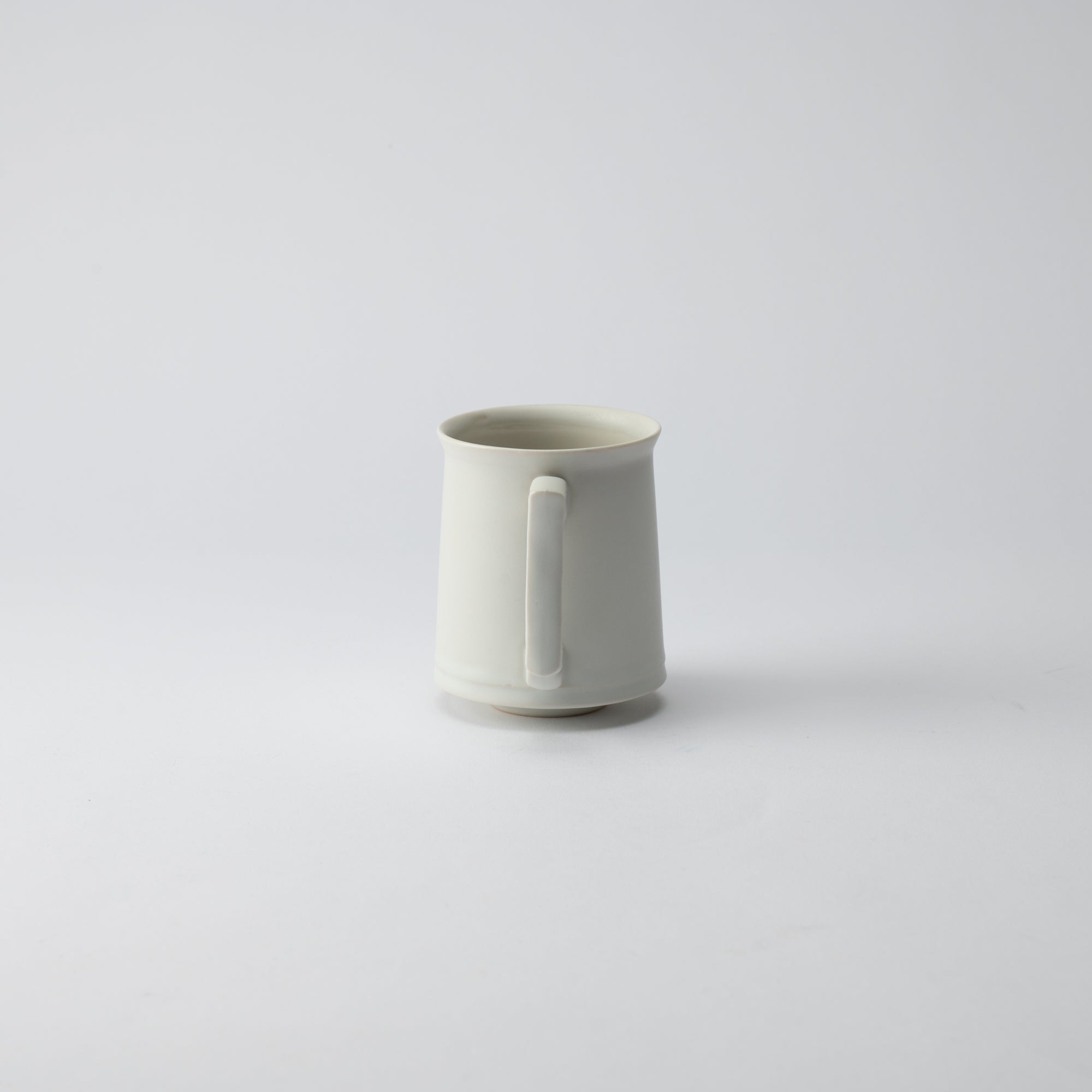 The slender handle is easy to grasp, complete with an elegant thumb rest. The mug's mouth is angled for comfortable sipping, and the bottom features a slightly elevated base that casts a subtle shadow around it.