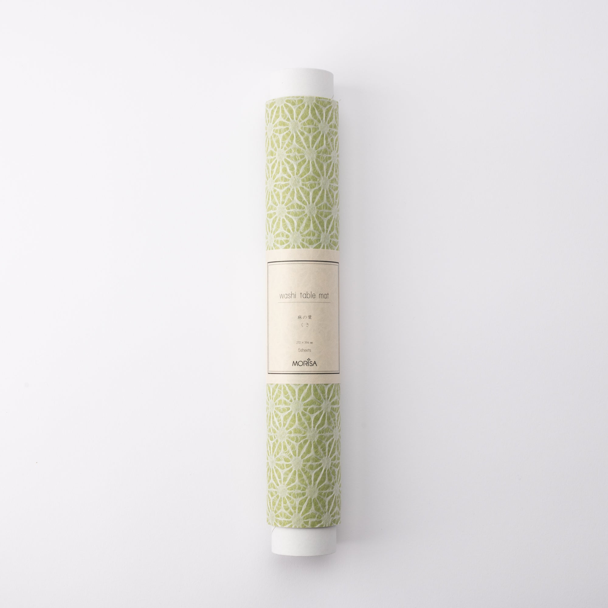 This place mat is made of Tosa Washi Paper and has a hemp leaf pattern. This is a traditional Japanese pattern called the "Asa-no-ha (hemp leaf)" pattern. The interweaving shapes of straight lines look like leaves and veins. It is a beautiful pattern that reminds us of organic plants in a regular and geometric manner. It also has a meaning of wishing for the healthy growth of children, in reference to the strength and rapid growth of hemp.