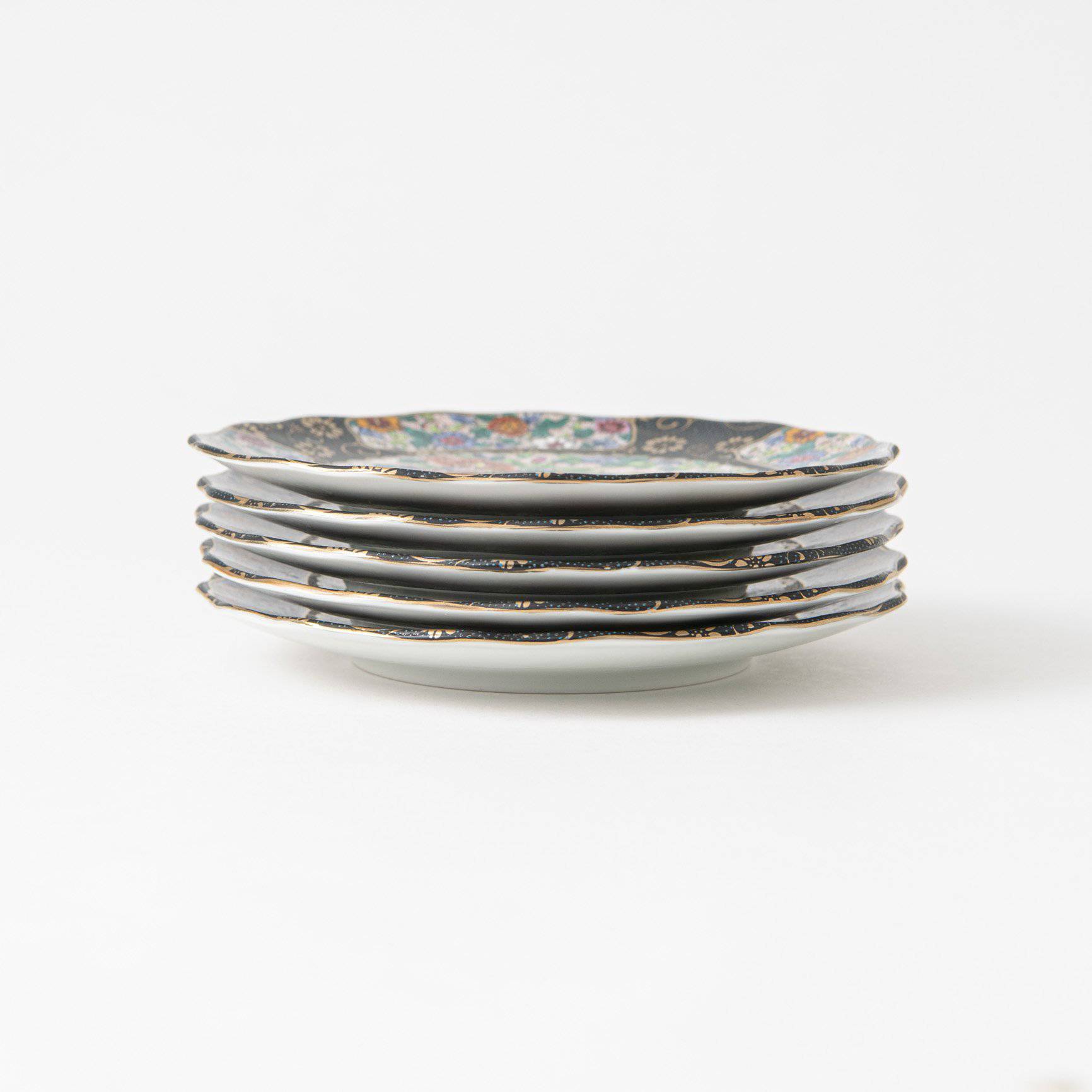 This is a gorgeous Kutani ware Japanese plate with a hand-drawn floral pattern all over the plate. Two patterns, a pattern in which natural flowers are in full bloom and a traditional pattern called "Aoichibu", are combined.