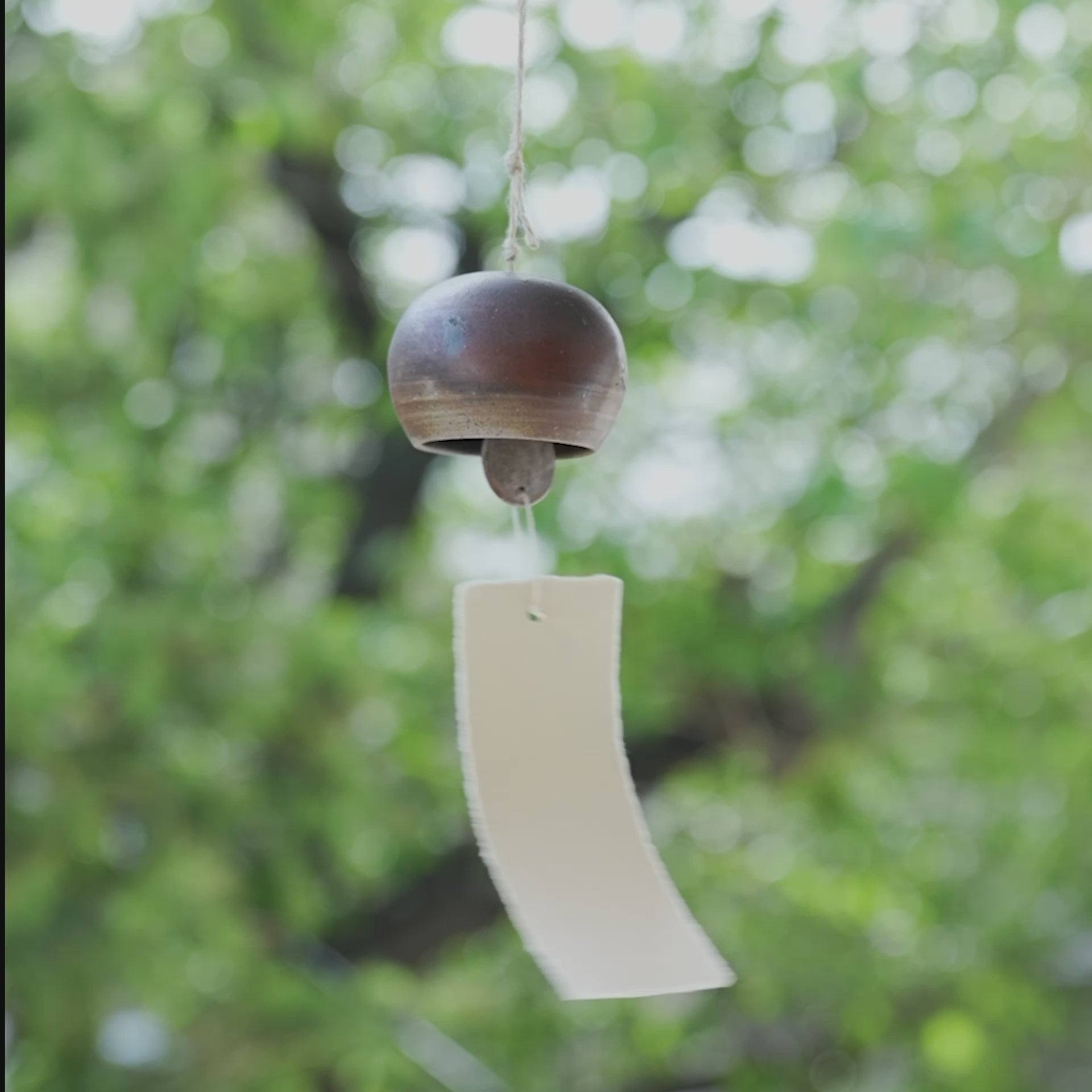 This wind bell is graced with the sangiri pattern, capturing the essence of fire's dance with clay. Its textured surface and the unique natural glaze emerge from the kiln's flames, showcasing Bizen ware's distinct blend of earth and fire. "San" hints at the kiln's wall, where ash accumulates transforming pieces into shades of gray or blackish brown, depending on their exposure to fire and ash. Each firing yields distinct patterns, making every wind bell a one-of-a-kind art piece.